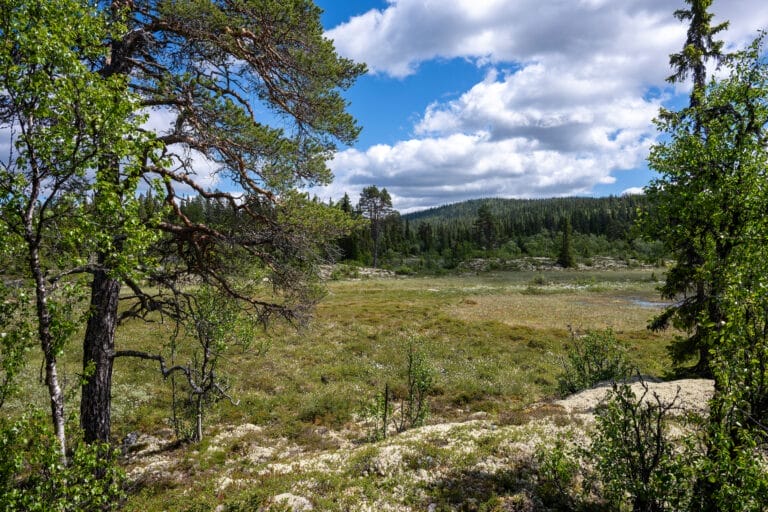 Fint terreng for bær, sopp, skogsturer, fiske og sykling på fjellveier.